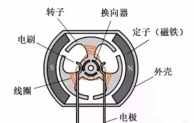 有刷电机是大家最早接触的一类电机,中学时物理课堂上介绍电动机也是以它为模型来展示的。有刷电机的主要结构就是定子+转子+电刷,通过旋转磁场获得转动力矩,从而输出动能。电刷与换向器不断接触摩擦,在转动中起到导电和换相作用。