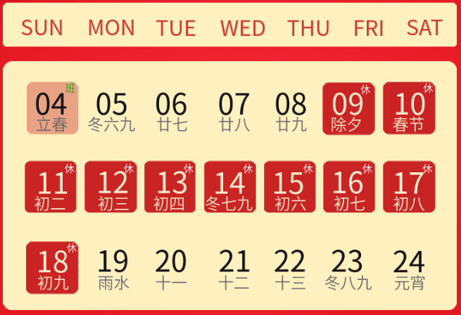1、2024年2月9日至2月18日为放假时间,共10天。
