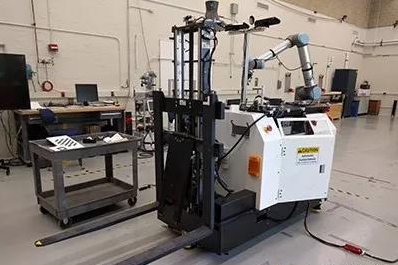NIST采用传统的叉车AGV,并在移动平台的顶部安装了Universal Robots UR10协同机器人臂,使其成为混合动力车。
